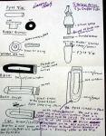 Ok a sneak peek at a couple of pages from my notebook to tide you over. Mind you these are crude doodles so keep that in mind when viewing. Also, some of these are slated for full production, others were just an idea that passed through I wanted to get down.