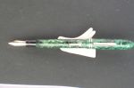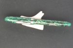 Conklin Endura Symetrik ~ Jade. Minor discoloration, nothing too bad. Huge, fine/medium 14K Conklin Toledo nib with great flex. Perfect imprint, glitter crescent above the clip. No brassing of any kind. Only some very mild drawer wear present. Overall condition is a strong 8.75/10. $250.00