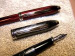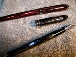 These are two of my new Cross Townsend FPs that I converted from rollerballs. The Ruby Red has a very smooth Medium nib that is quite wet and broad for a medium. The Titanium Herringbone pen has a fine nib installed, which I have yet to test.
