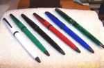 Here are my Cross Solo BPs I've gathered up from various places. Several were really inexpensive since they have the dreaded Cross "dried-up refill advance mechanism", but all work reasonably well. The transparent green pen is a regular Solo, while the colored ones are from the Solo Sport line, all from the 1990s.