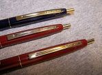 Anyways, I abandoned the Clic for Malibus and Jotters, and then for Cross Century 1 BPs, followed by the wonderful world of the FP. But nostalgia struck me solidly, and I began searching for some Clics in good condition. In 2000, the company where I worked was sold, so anything that was junk was to be tossed, and only my memories of the Clic saved the following pens from the dumpster. They had dried out refills and were in the trash box, so I rescued them for my own collection.