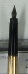 I have recently acquired a somewhat unusual fountain pen. I hope I will be able to post a couple of photos. The pen is marked 14 kt on the jump ring. The barrel and cap are comprised of yellow gold and what appears to be black plastic. It is 33/8 in long not counting the jump ring in the closed position. The jump ring is approx. another 1/4 in. The barrel and cap screw together. When the cap is removed you extend the nib by turning the end of the barrel one full turn. The nib is marked 14 with what appears to be a c and an a beneath the 14. the extended nib is 3/8 in long. There does not appear to be any filling mechanism. The rotating end of the barrel has two holes on opposite sides with what appears to be a pin through the drilled hole. I have some questions I hope can be answered here. Firstly, how do you fill the pen? What era would this pen be from? How would you establish a value (other than the gold value) for a pen like this? I have been unable to find a comparable pen anywhere. Thanks for any help you may be able to offer. This is my first time on any vintage pen forum. If any more photos would help I'll be happy to provide some.